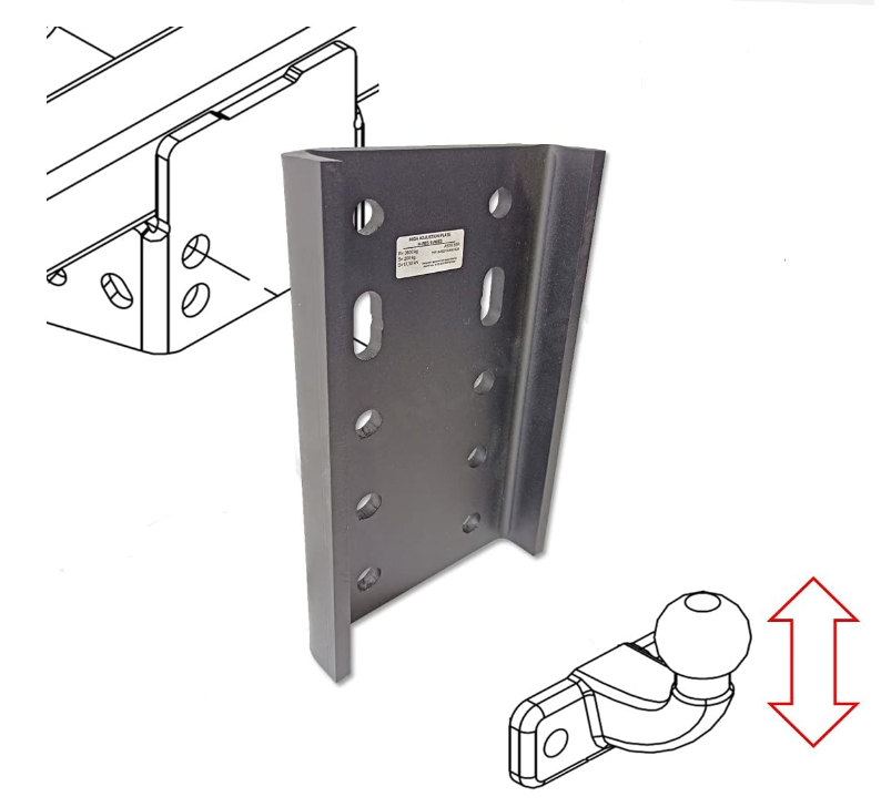 Die Adapterplatte ist so konstruiert, dass alle europäischen Kupplungskugeln mit einem Flansch Ihrer Wahl höhenverstellbar sind.
