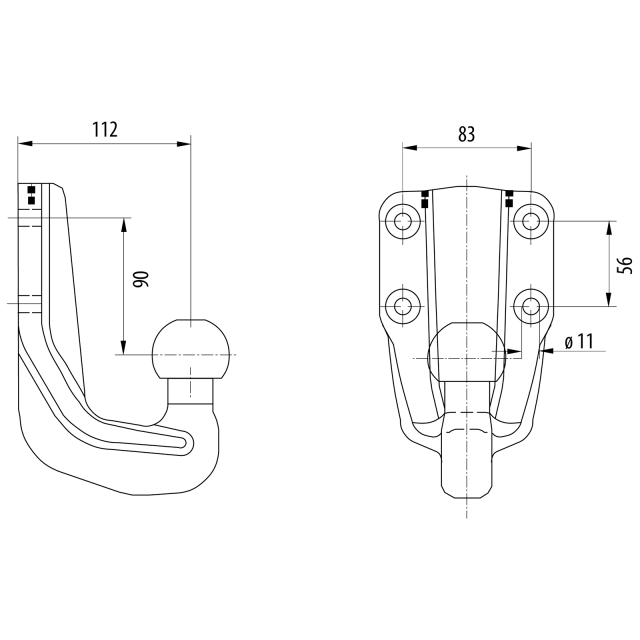 Brink Flanschkugel 4-Loch 112 x 90 mit niedriger Kugelhöhe 9078500 inklusive Schrauben und Muttern