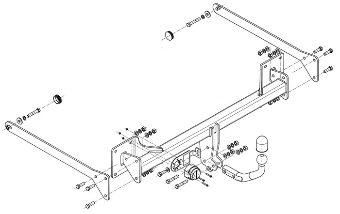 Die Anhängerkupplung wird komplett mit Schrauben und Muttern ohne Kabelsatz geliefert.